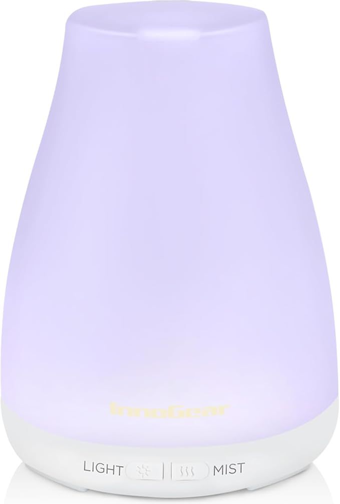 InnoGear Essential Oil Diffuser, Ultrasonic Diffusers for Home Aromatherapy Humidifier for Bedroom Room 7 Colors LED 2 Mist Mode Auto Off, Basic White