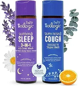 Oilogic Bath Baby Essentials (Slumber & Sleep, Stuffy Nose & Cough) - Gentle Baby All-Over Wash with Essential Oils to Soothe, Calm & Comfort - Pediatrician-Tested & Safe for Babies & Toddlers