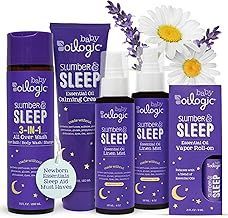 Oilogic Slumber & Sleep Bath Baby Essentials Gift Set - Includes All Over Wash, Calming Cream, Sleep Spray & Roll-On Essential Oils - Pediatrician-Tested Sleep, Comfort & Wellness Blends for Babies